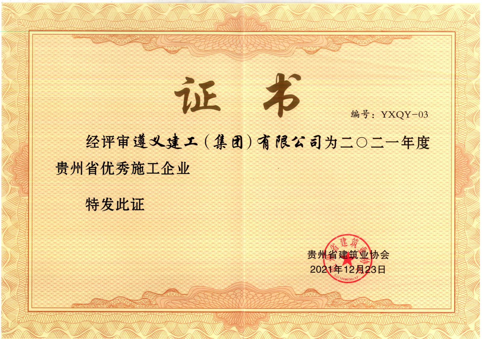 2021年10月,貴州省建筑業(yè)協(xié)會(huì)開(kāi)展“2021年度貴州省優(yōu)秀施工企業(yè)”;評(píng)選活動(dòng),對(duì)省內(nèi)施工企業(yè)的經(jīng)濟(jì)效益、社會(huì)效益、經(jīng)營(yíng)管理等各方面進(jìn)行綜合考量,于2021年12月23日,公布了評(píng)選結(jié)果。