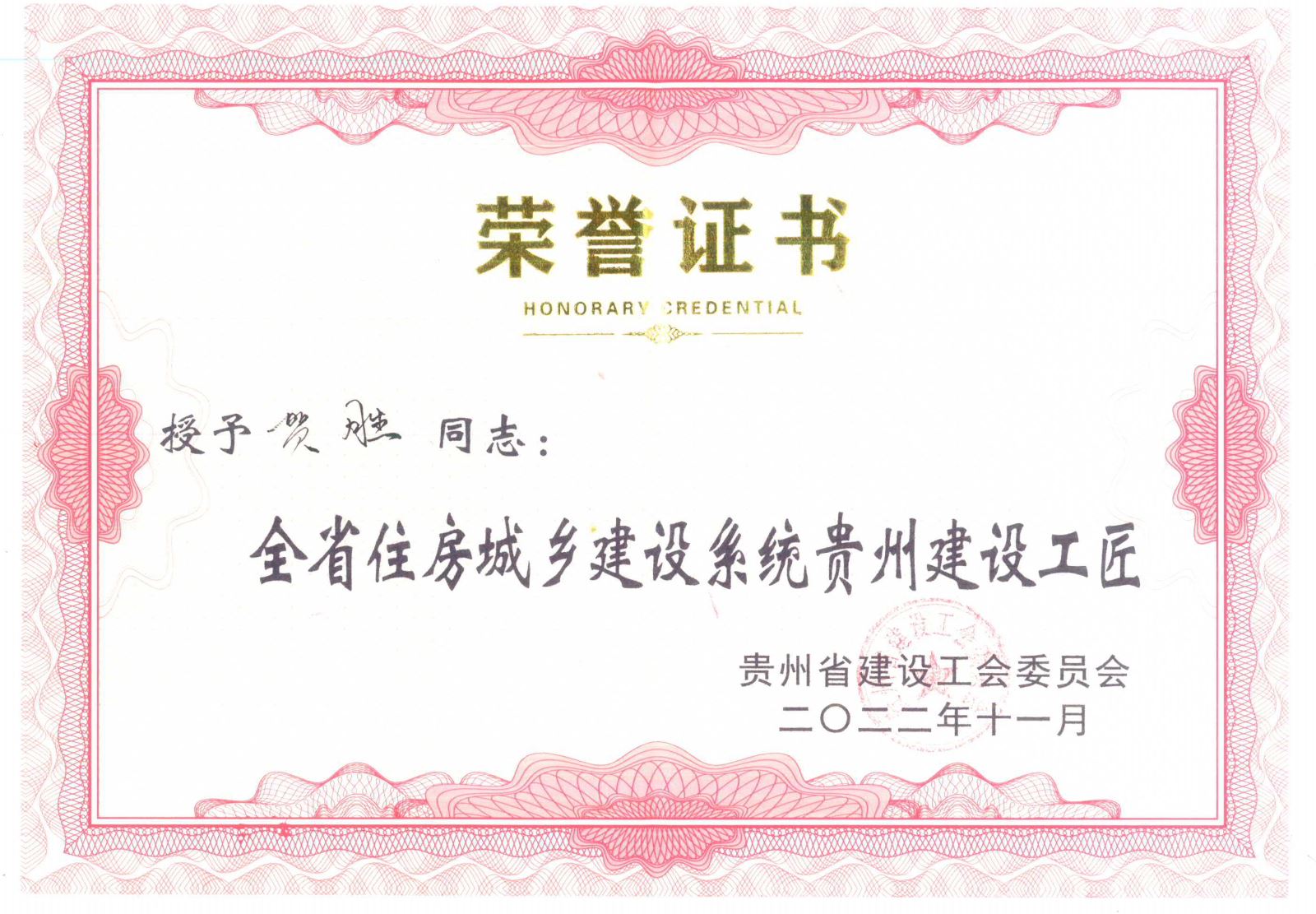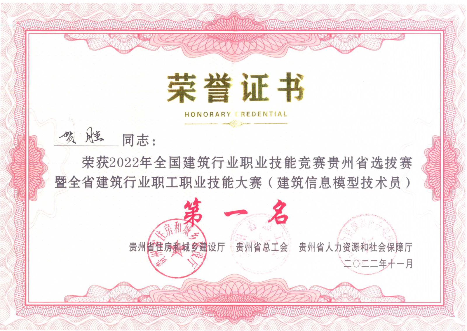 賀勝同志獲得 “建筑信息模型技能大賽”全省第一名,并被授予“全省住房城鄉(xiāng)建設(shè)系統(tǒng)貴州建設(shè)工匠”榮譽(yù)稱號,同時(shí)獲得5000元現(xiàn)金獎(jiǎng)勵(lì)。